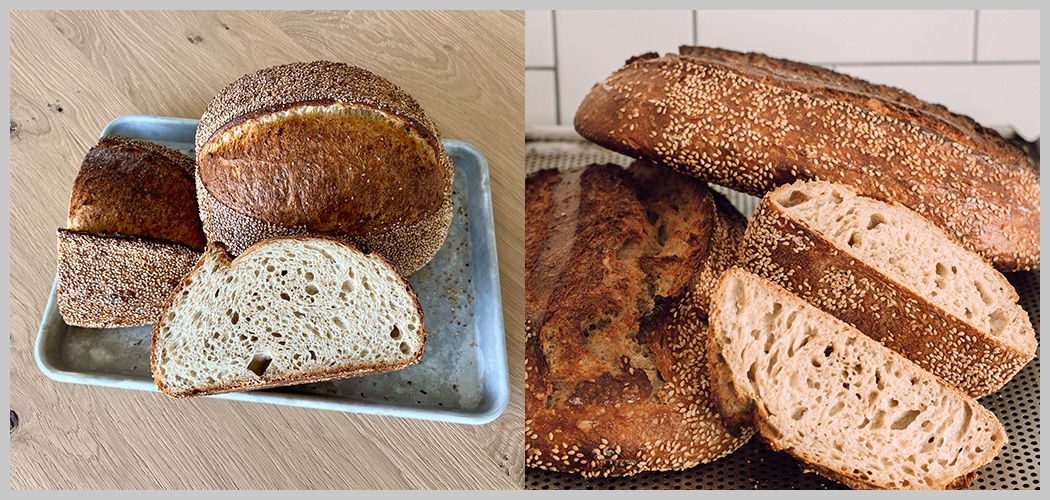 Dit brood is echt een hit thuis! Fans van regulier sesambrood kunnen hun hart ophalen met dit sesambrood on steroids. Het recept wordt verrijkt met een miso/sesamolie roux, wat een heerlijke diepe, subtiel hartige en notige umamismaak aan het brood toevoegt. Het deeg is luchtig en heeft een fijne structuur, wat resulteert in een zachte binnenkant. De lange rijstijd en natuurlijke fermentatie en hoge baktemperatuur zorgen voor een heerlijk krokante korst. Dit brood is lekker met zowel hartig beleg, maar doet het ook verrassend goed met zoet beleg door de subtiele hartigheid.