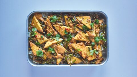 Dit rijstgerecht, dat in Indonesië nasi uduk wordt genoemd, is heel smaakvol door de kokos, kruidnagel, het citroengras en de cassia. Het wordt traditioneel opgediend met gebakken sjalotjes en pindasambal. Dit recept is afkomstig uit De Wereldse Bakplaat van onze bakplaat koninging Rukmini Iyer. De wereldse bakplaat In ‘De wereldse bakplaat’ neemt Rukmini Iyer ons mee … Meer lezen over Indonesische kokosrijst met knapperige tofu en pindasambal