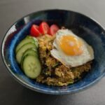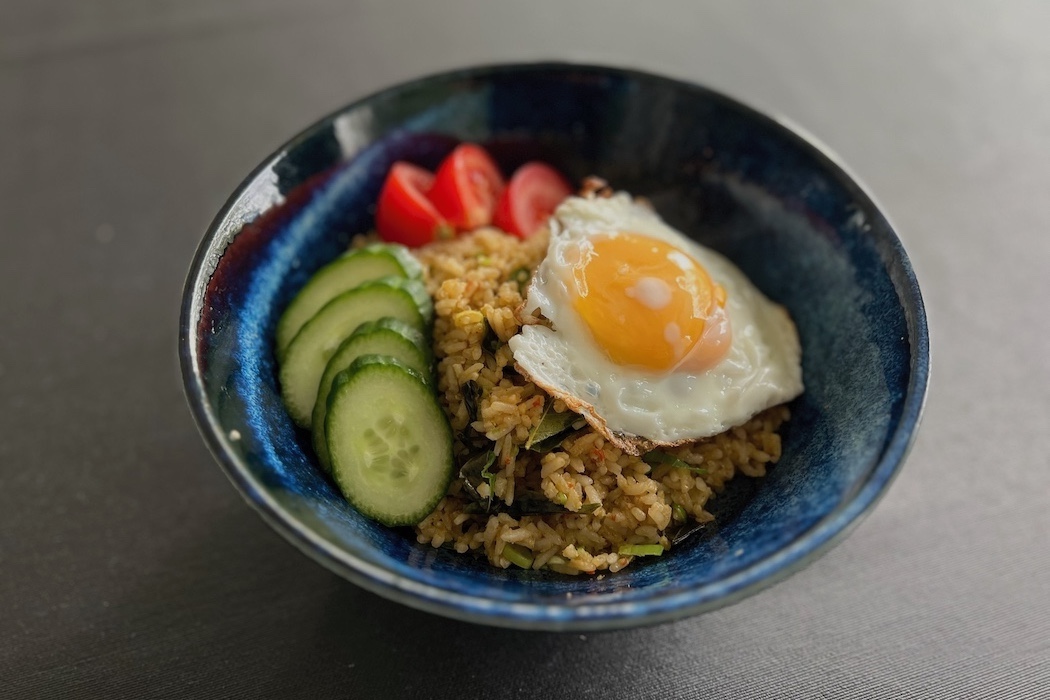 Door de koude rijst goed te omscheppen in de bumbu, neemt elke korrel de rijke smaken op, en de lente-ui aan het einde geeft een frisse, knapperige tegenhanger. Serveer met een spiegelei, stukje gebakken kip en wat zoetzuur, en je hebt een heerlijk bordje!