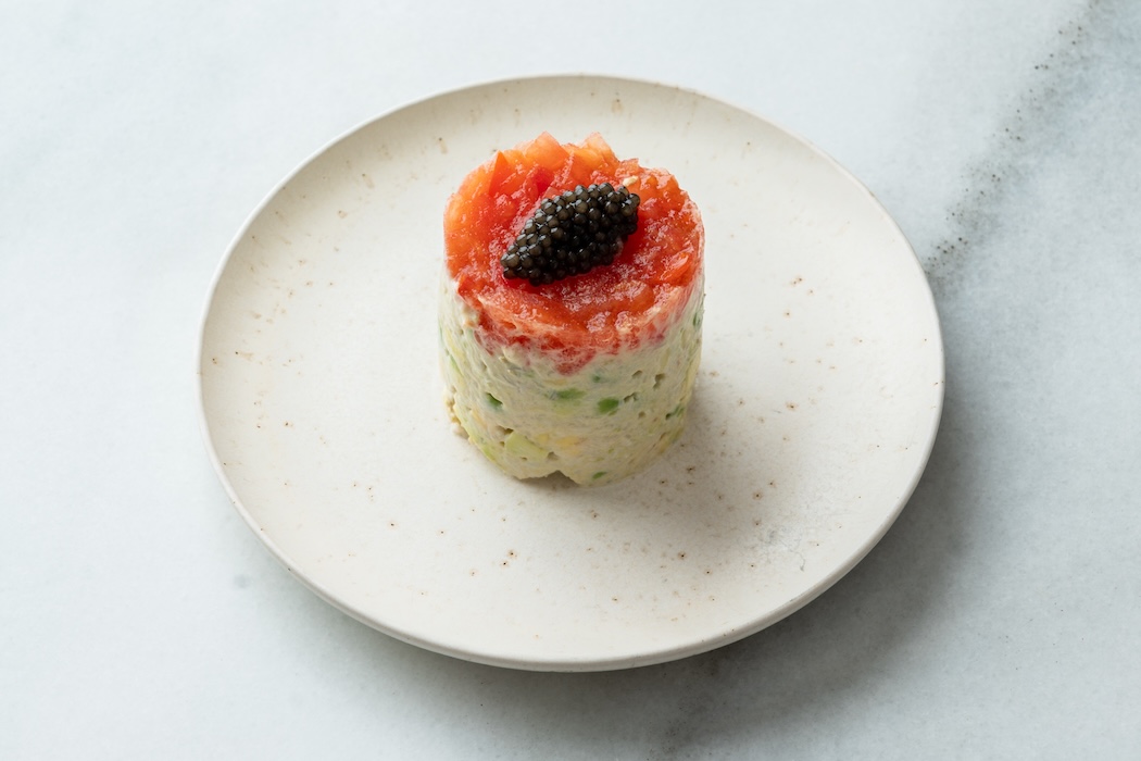 Timbaal van krab en avocado met pitttige limoen mayonaise